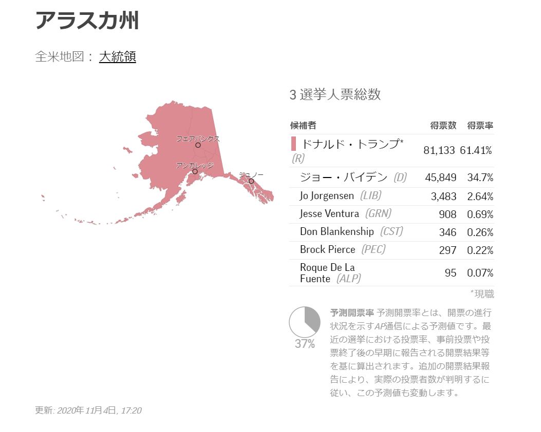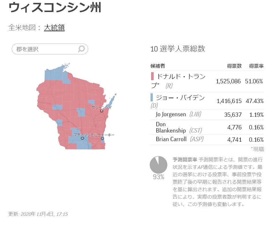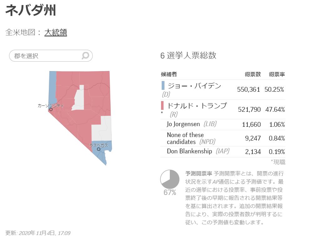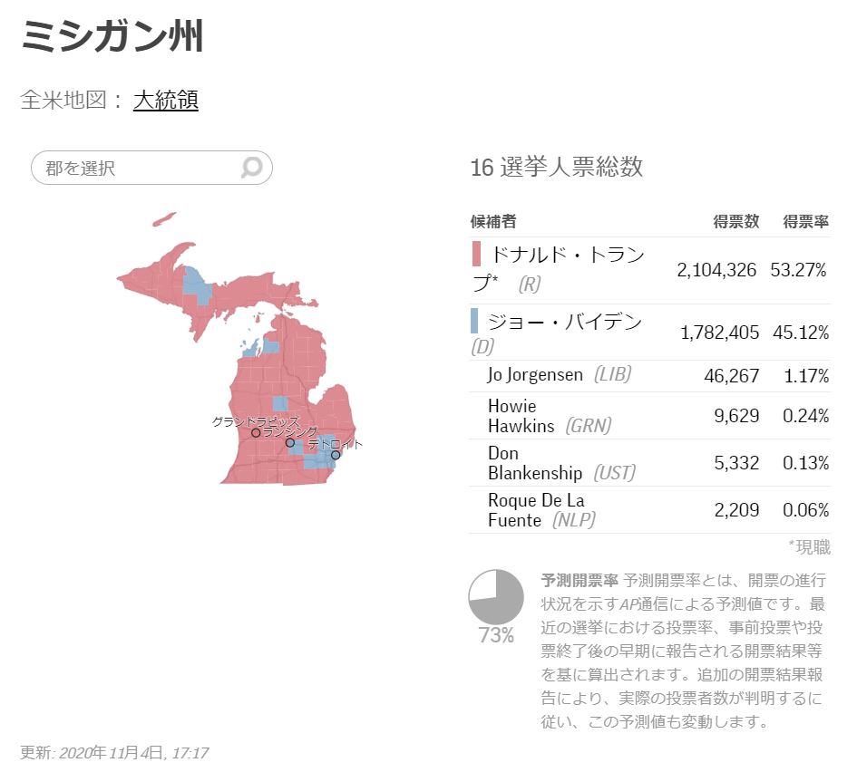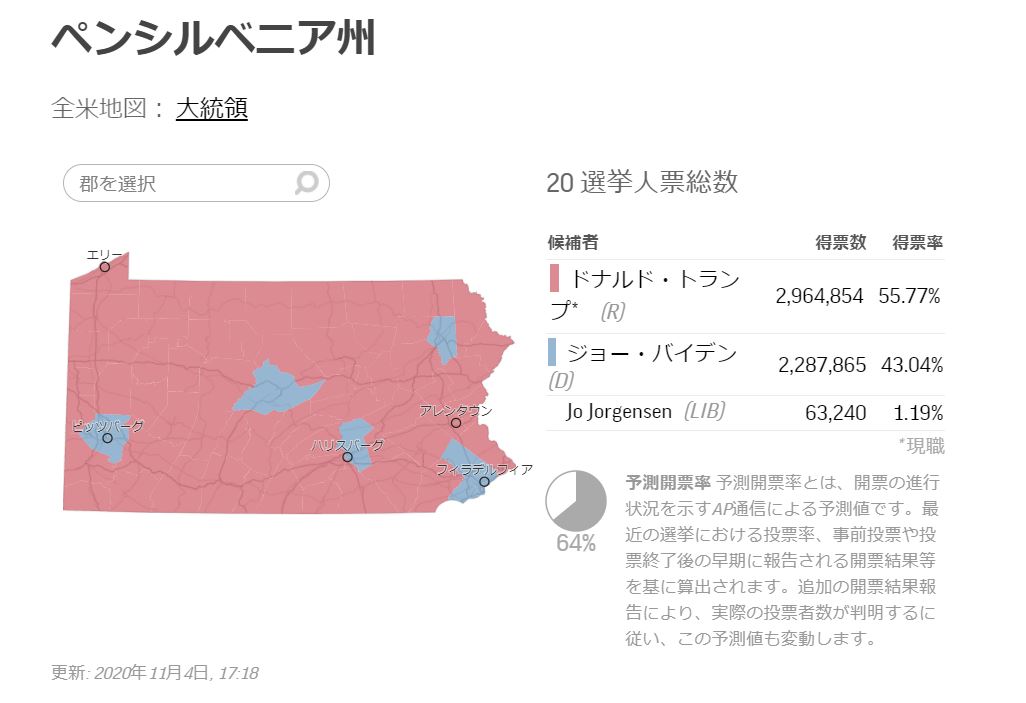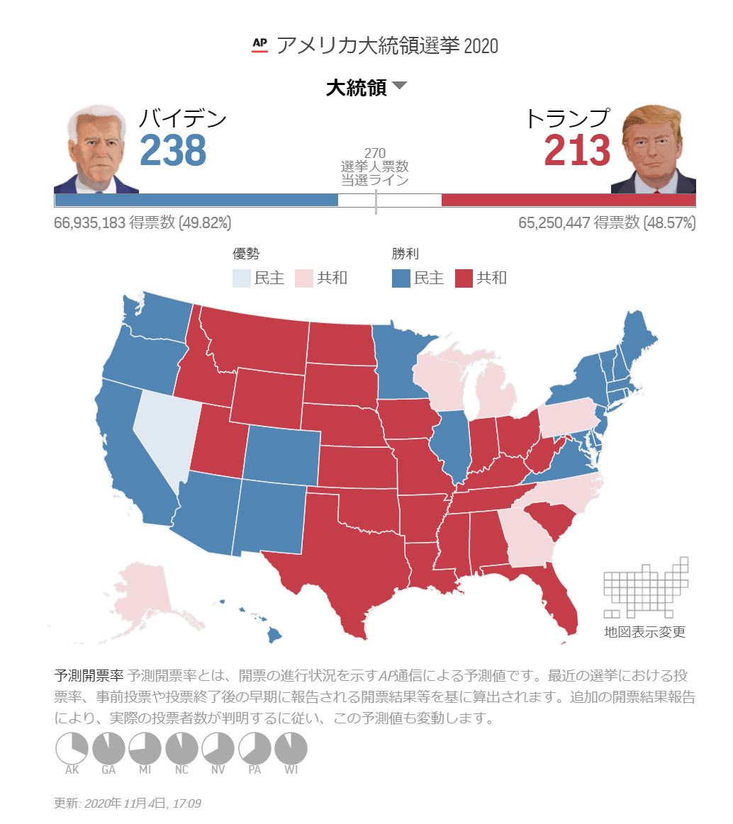 アメリカ大統領選挙 2020年11月4日 17時時点の状況を切り取りました。