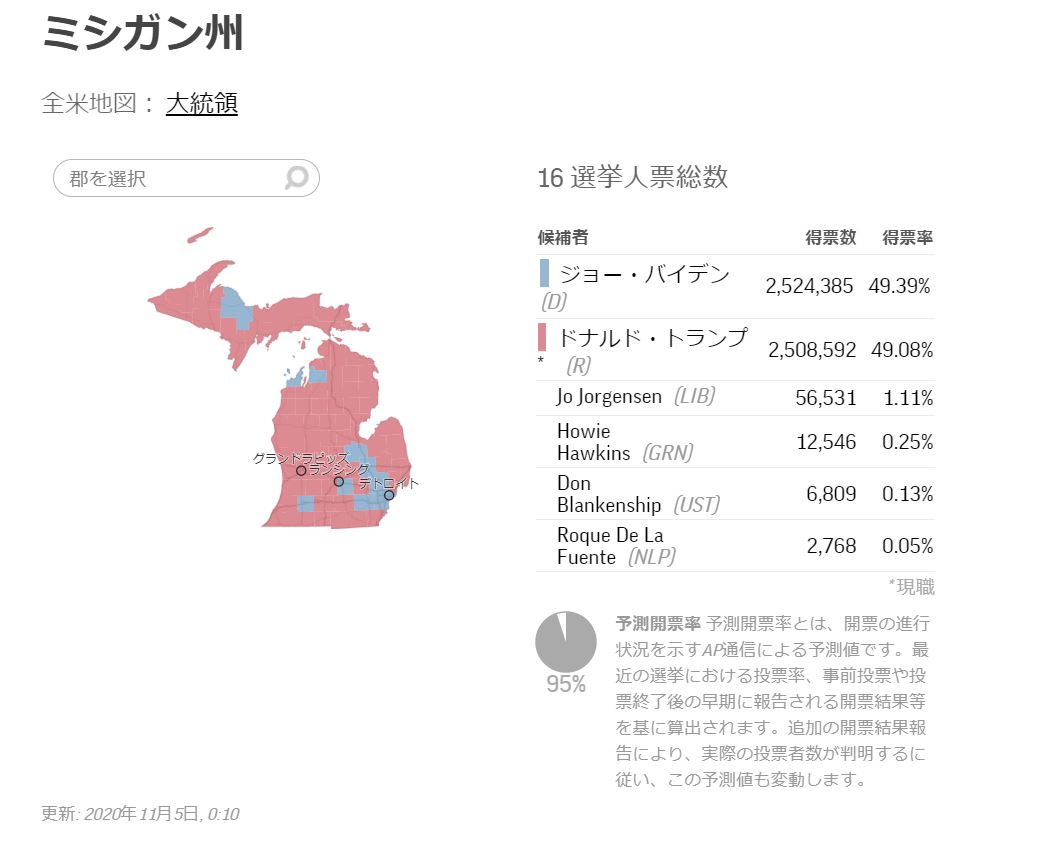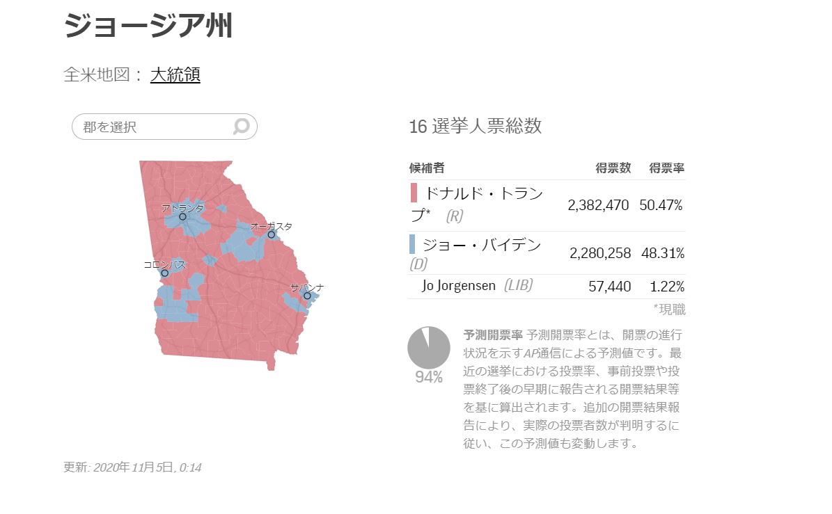 アメリカ大統領選挙 2020年11月5日 0時時点の状況を切り取りました。