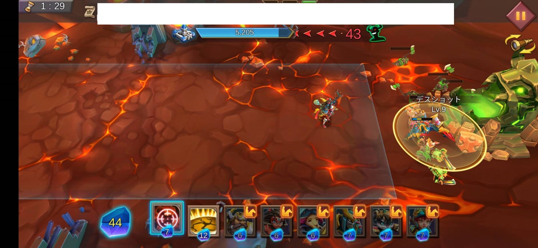①「地割れ」で相手タワーを攻撃します。タワーは地割れ1回で壊すことが出来ます。