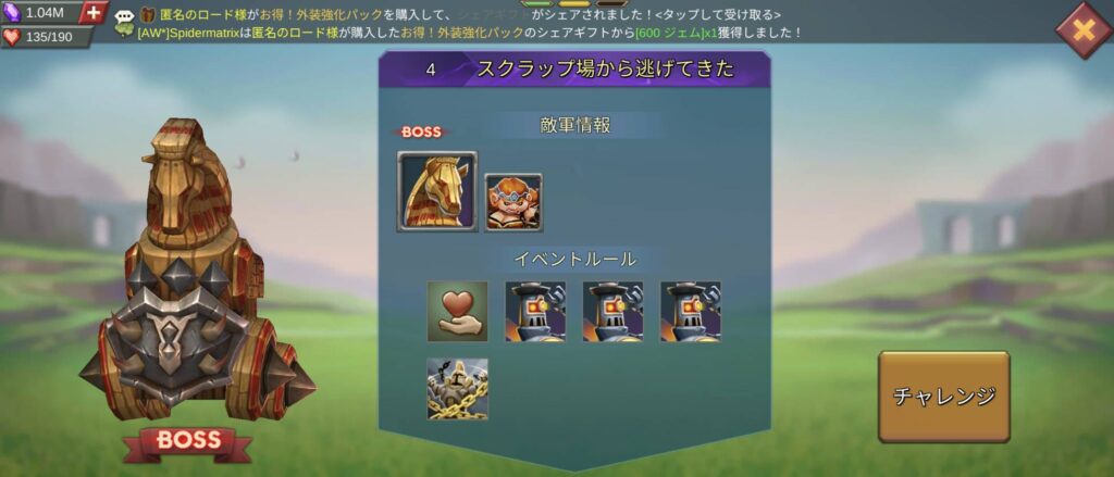 ロードモバイルの限定チャレンジ:ワタシハポチョムキン のステージ4(スクラップ場から逃げてきた)をオートクリアできるパーティを紹介します。全部のチャレンジをクリアしてポチョムキン(蒸気機兵)をゲットしましょう。