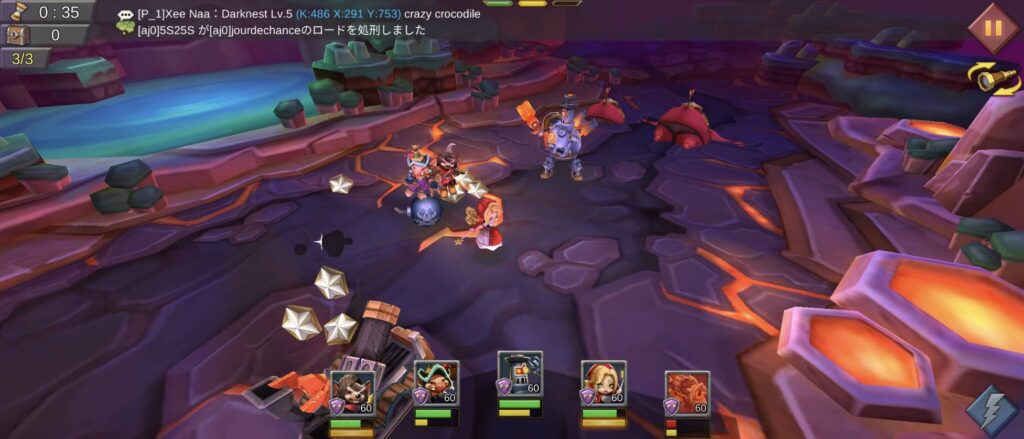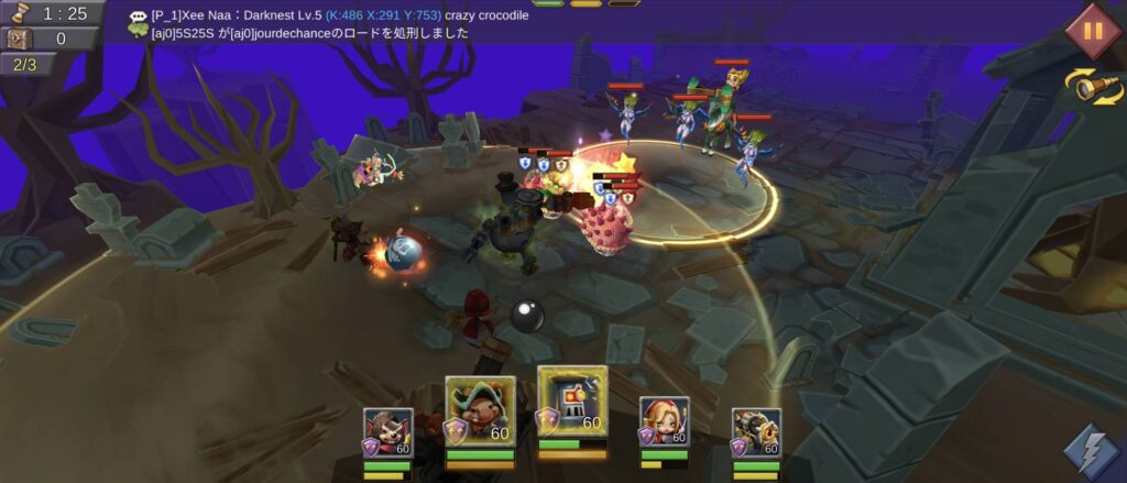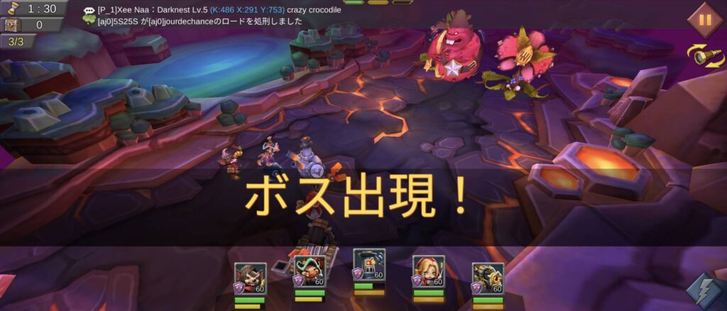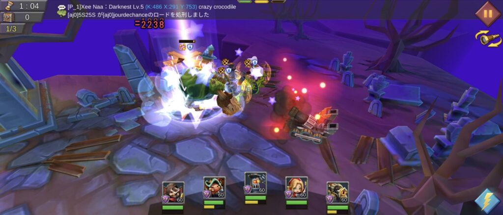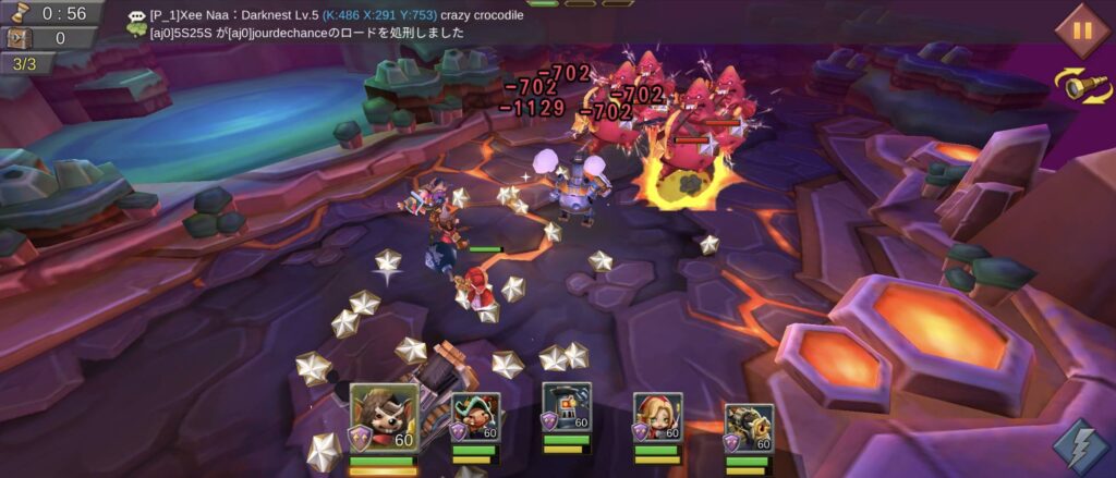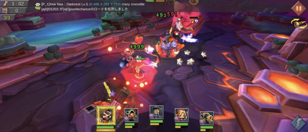 一番左の「モグラ男」のスキルは回復です。HPが減ったら「モグラ男」のスキルを使います。
