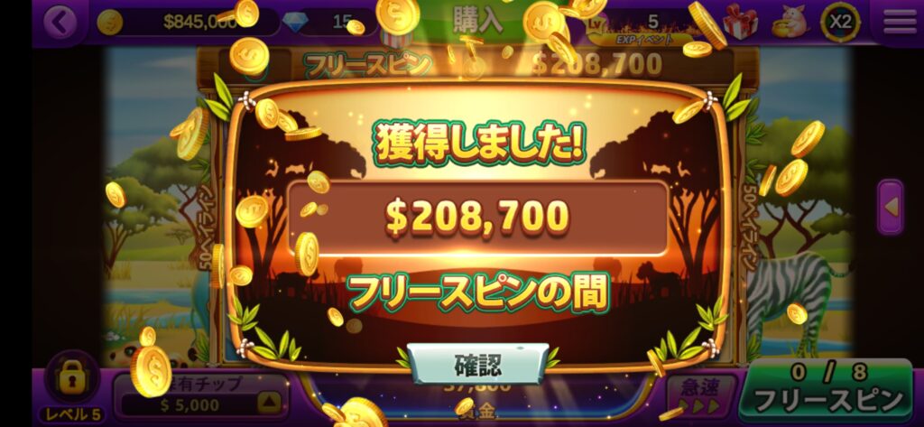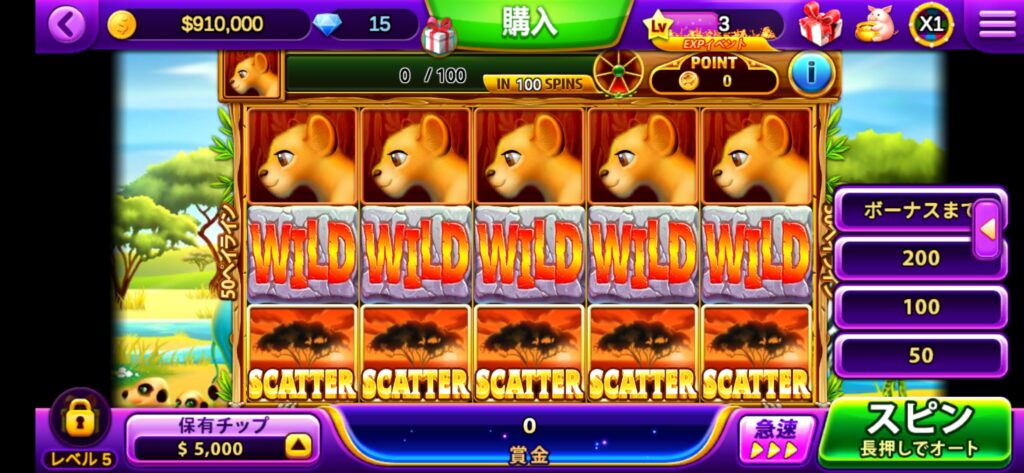 サバンナの幼獣は他の口コミや攻略サイトでも紹介していたことと、実際プレイして、コインが減りにくいことと、実際に増やすことができたたためです。