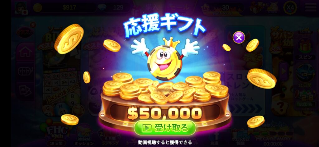 課金しなくても、以下の方法でコインを集めることができますので、アプリ画面から探してみましょう。