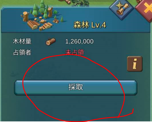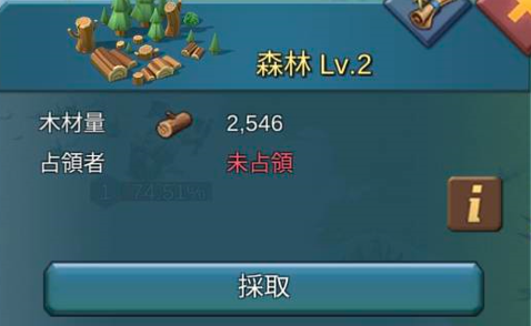 資源地をタップすることで、その場所にどれだけの資源が残っているかを確認できる。しかし、この表示は採取後の残量を示していることが多いので、本来とれる資源はもっと多い場合も。