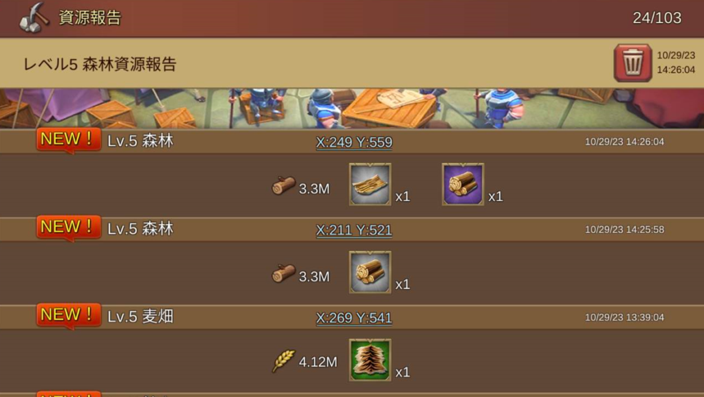 私も多くの回、高レベルの資源地を狙って採取を行い、その甲斐あって多くの資源を手に入れることができました。