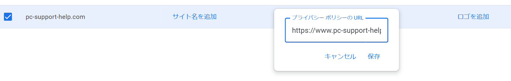 当ブログのプライバシーポリシーのURLは「https://www.pc-support-help.com/privacy/」のため、一緒に設定しておきます。